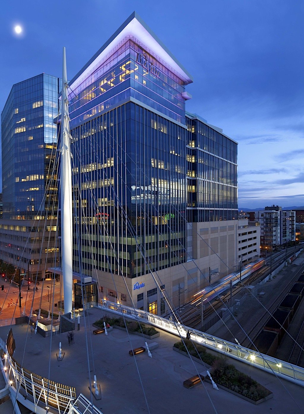 The 14-story headquarters building is located at 2000 16th St, just west of LoDo. The 270,000 sf building sits on a site near the Millenium Bridge and compliments the design adjacent to it at 1900 16th St. The Fortune 500 company plans to expand its headquarters into a new LoDo office tower—located at 16th and Chestnut—that will add more than 800 jobs.